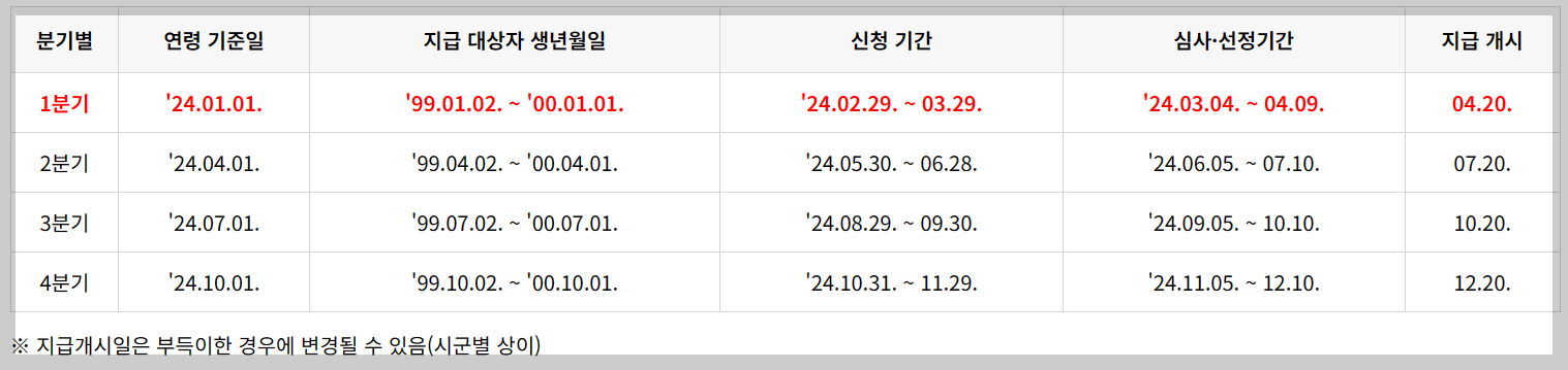 경기도는 24세 청년에게 분기별로 25만 원(연 100만 원)을 지급하는 ‘청년기본소득’ 2024년 1분기 신청접수를 2월 29일 오전 9시부터 3월 29일 오후 6시까지 진행한다고 합니다.