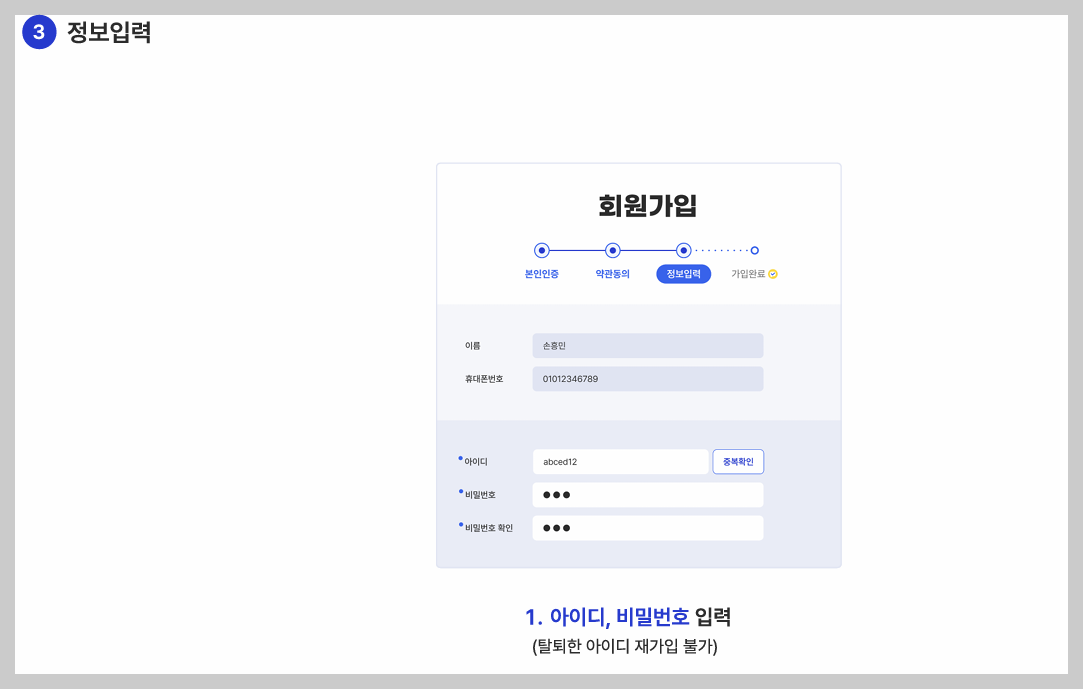 - 회원 가입: 비회원일 경우 회원 가입 필수. 차량번호와 휴대폰 소유주 정보를 입력하여 소유자 일치 여부 확인.