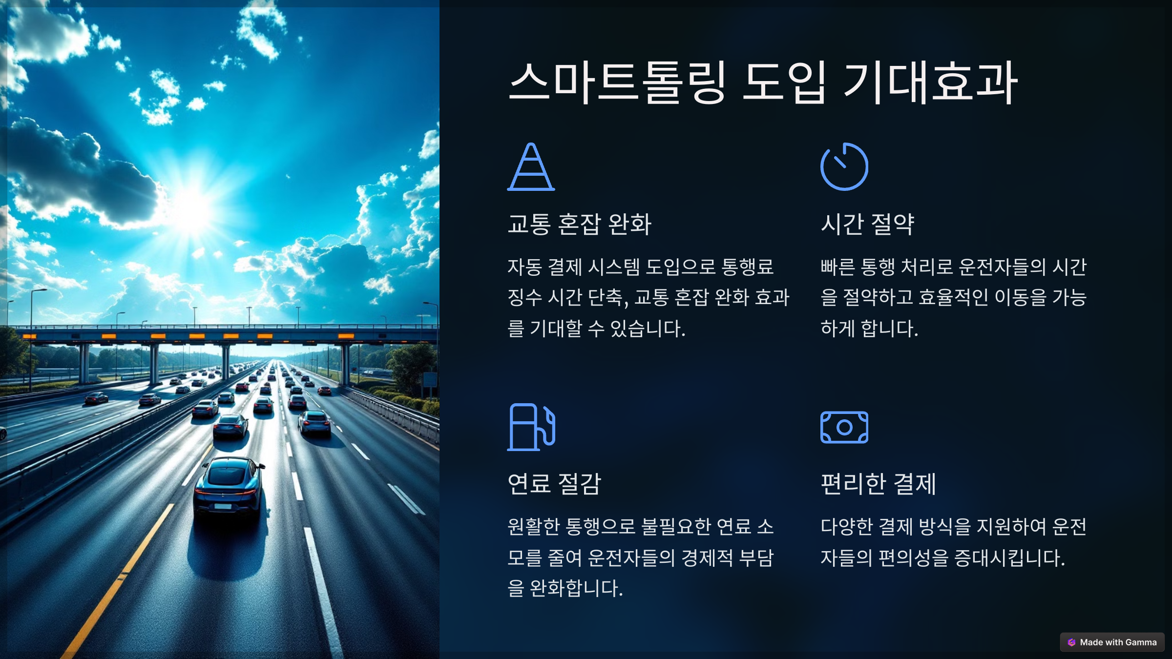 - 시간 절약: 요금소 정체 해소, 빠른 통행 가능.