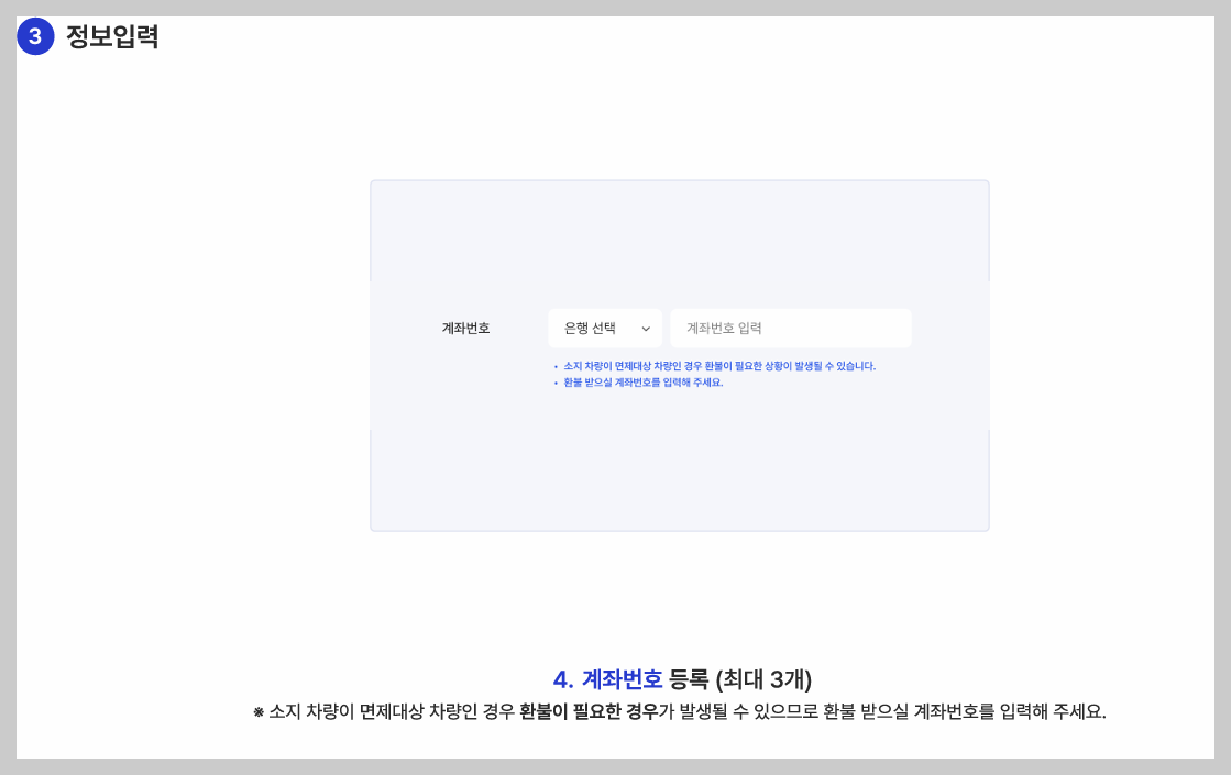 | 면제 대상 차량 | 등록 및 증빙자료 제출 후 면제 처리 (장애인, 친환경 차량, 다자녀 차량 등 해당). |