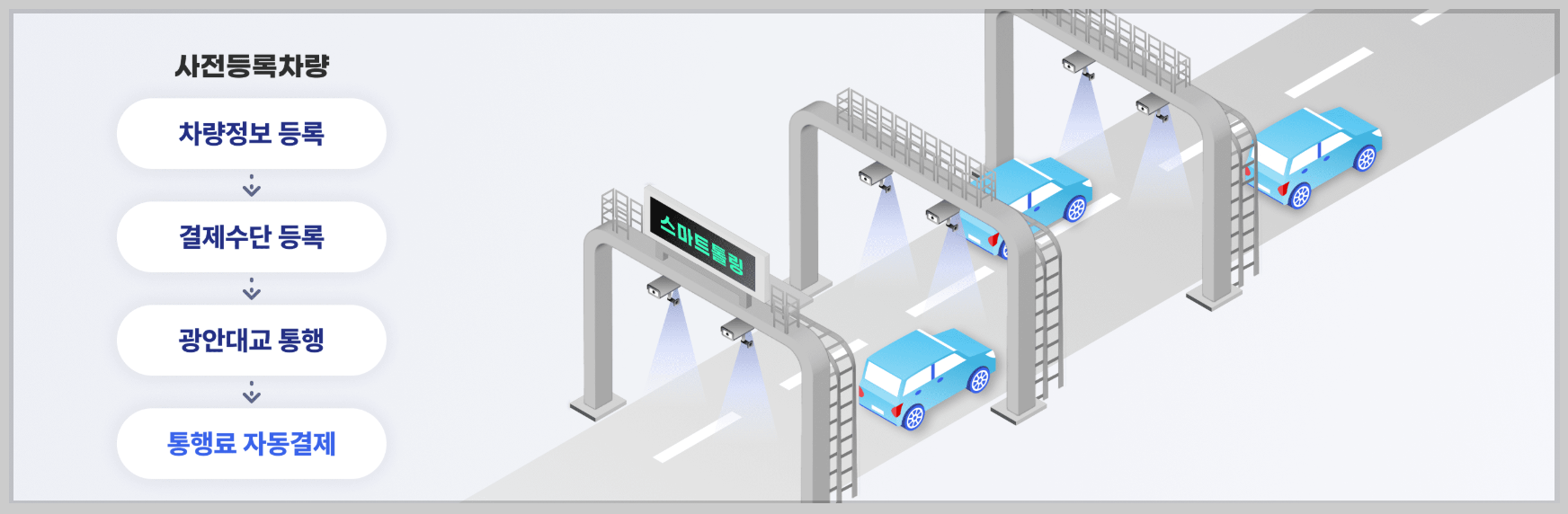 - 하이패스 미장착 차량도 사전등록만 하면 자동 결제 가능.