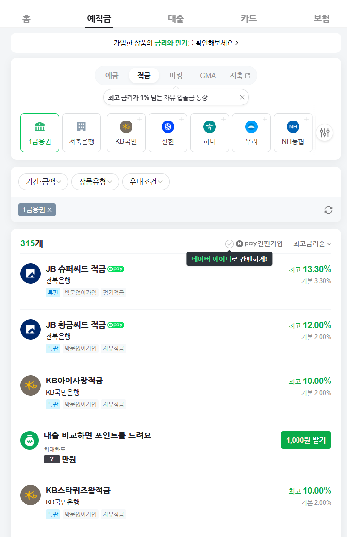 🏦 네이버페이 최고 금리 적금 상품 리스트