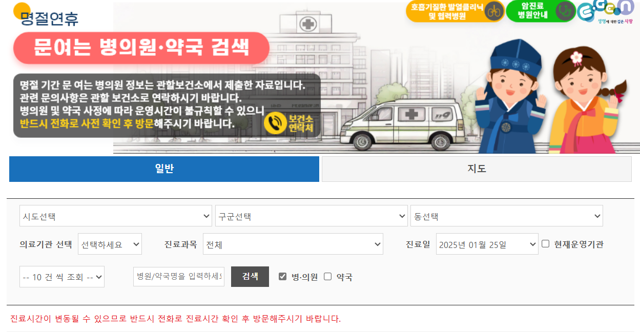 구글 지도나 네이버 지도에서 ‘연휴 당번 병원’ 검색도 추천합니다.