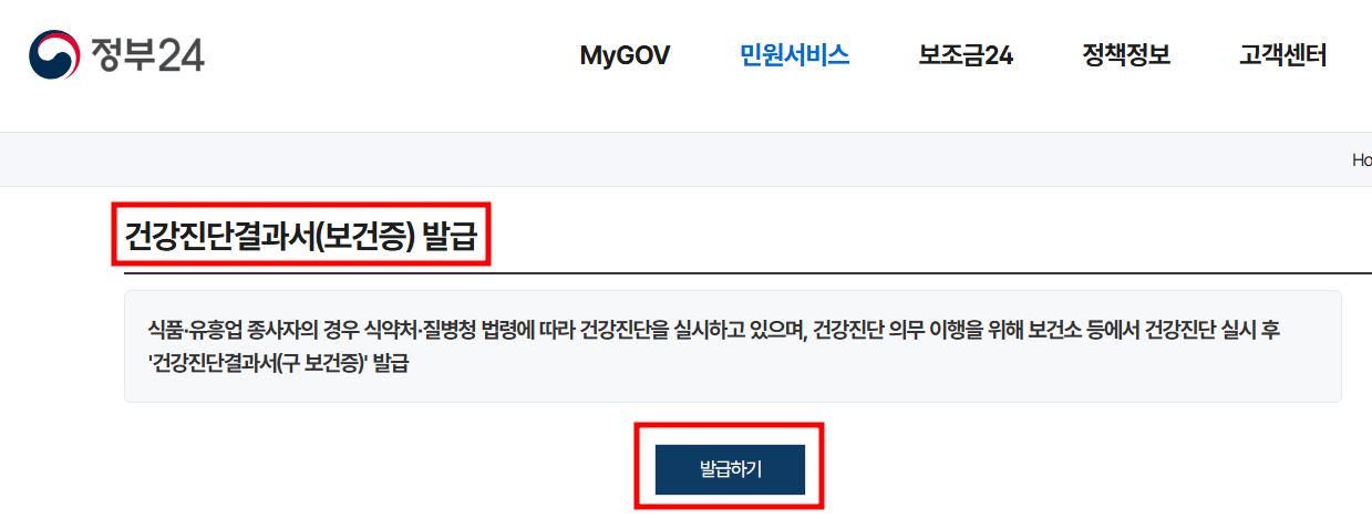 - 정부24(www.gov.kr): 다양한 정부 서비스를 제공하며, 보건증 발급도 지원합니다.