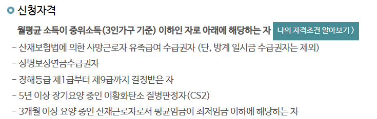 아래 조건을 충족하는 산재근로자가 신청할 수 있습니다.
