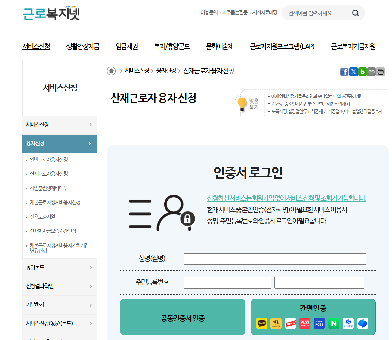 - 근로복지넷(https://welfare.comwel.or.kr) 접속 → 서비스신청 → 공동인증서 또는 간편인증 로그인 후 신청.