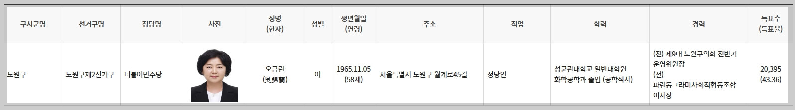 노원구 : 오금란