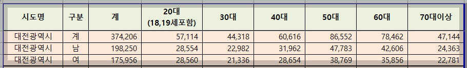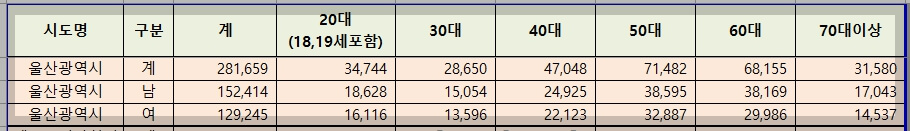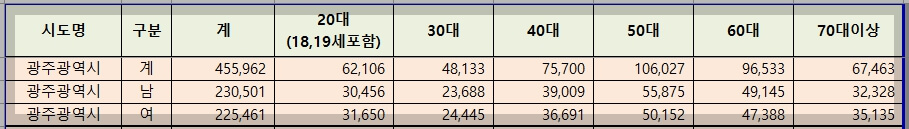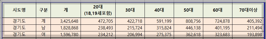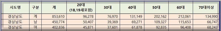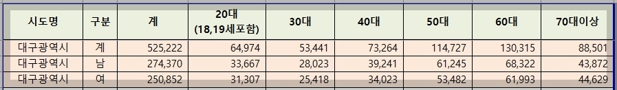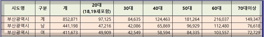 사전투표 제일 많이 한 남자 연령 1위 : 50대