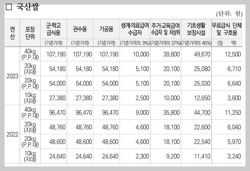 2) 주거급여, 교육급여 수급자 및 차상위계층은 10kg 1포당 10,000원을 개인부담합니다.
