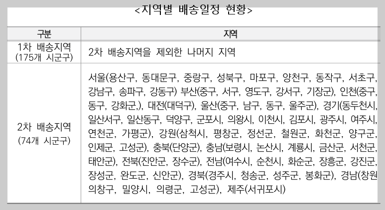 공급 신청지(주민등록상 주소지)로 택배회사에서 직접 배달함.