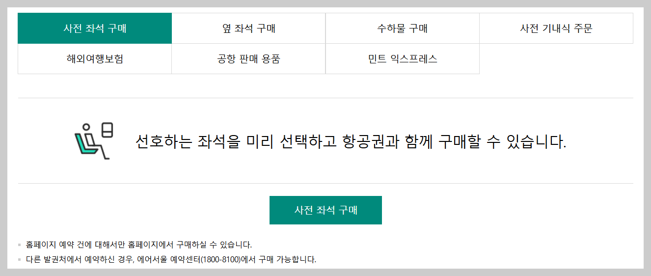 - 좌석 확인/변경: 기존 좌석을 확인하거나 변경할 수 있습니다.