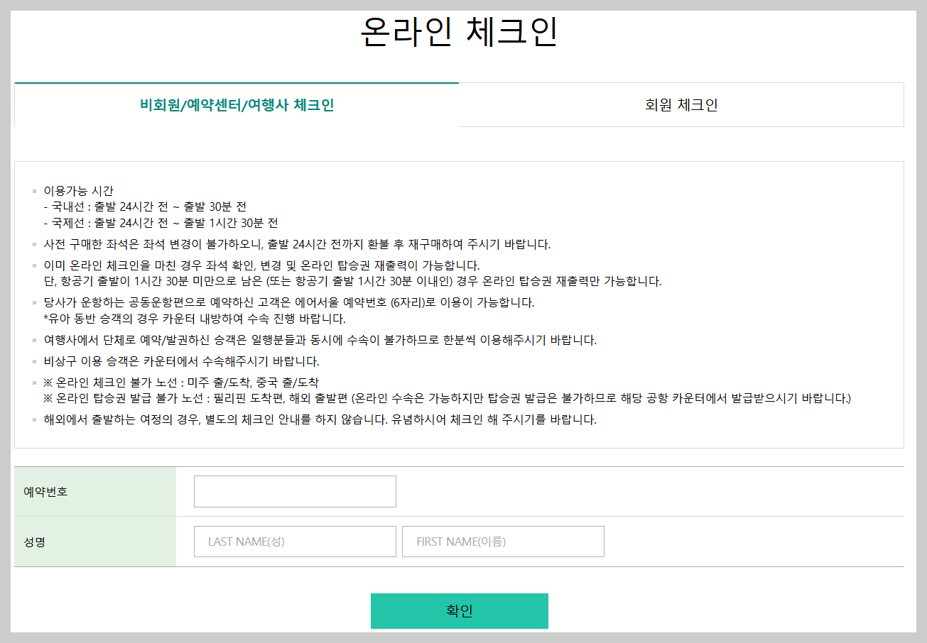 - 국제선: 출발 48시간 전부터 체크인 가능.