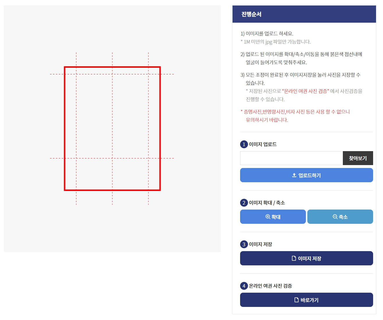 - 얼굴과 어깨가 정면을 향해야 하며, 머리를 기울이거나 측면을 향한 사진은 허용되지 않습니다.