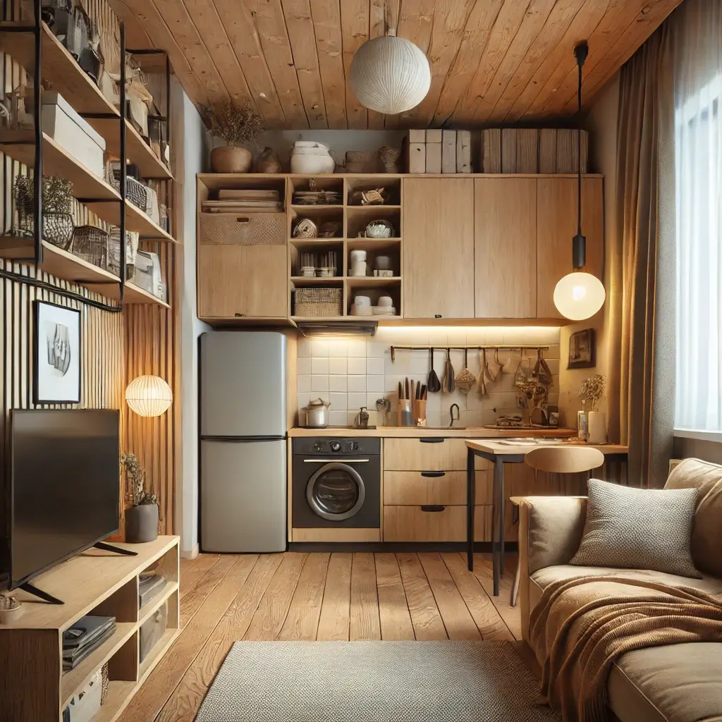 작은 원룸에서는 다기능 가구와 효율적인 수납이 중요합니다.