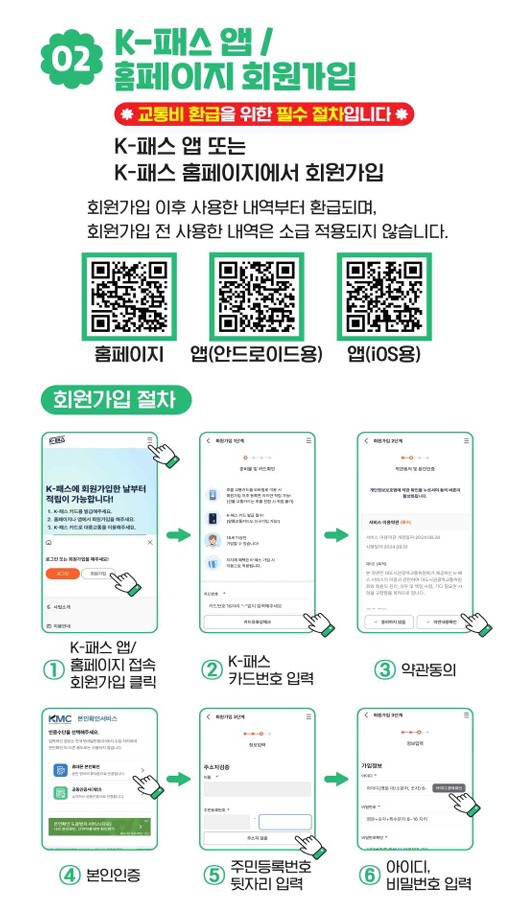 ➡️ K-패스 앱/홈페이지 가입 필수!