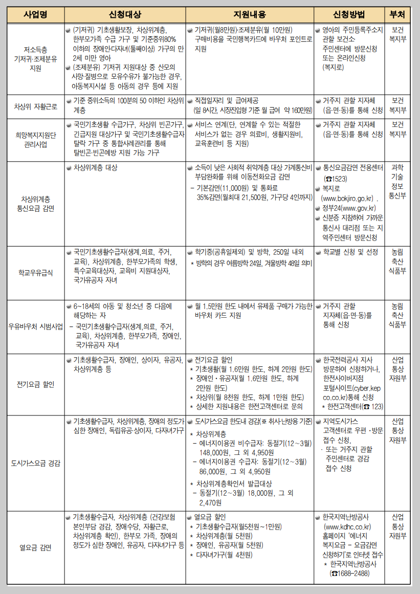 차상위계층 자격을 통해 지원받을 수 있는 사업에 대한 내용입니다.