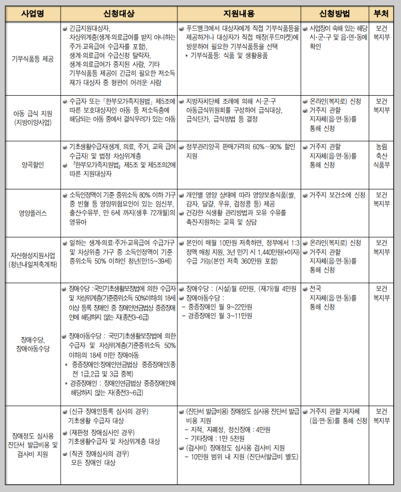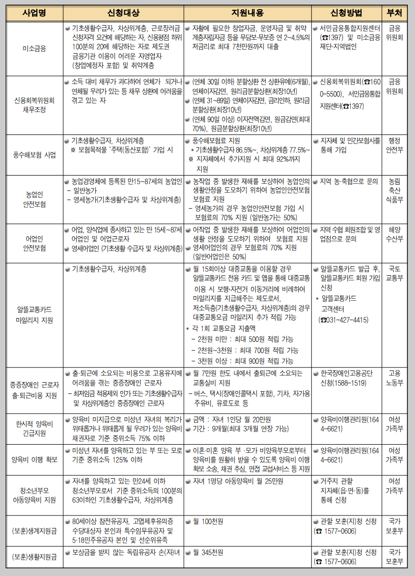 이번 내용에서는 생계지원 분야의 혜택에 대하여 알아 보겠습니다.