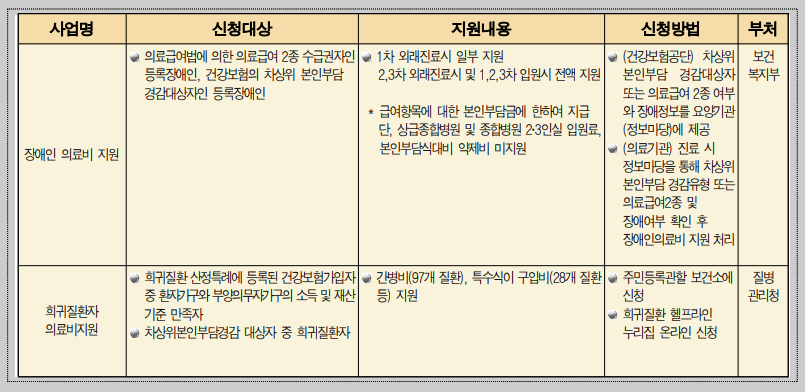 2) 장애인 의료비 지원