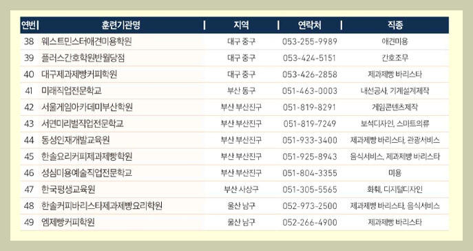 1. 직업훈련포털 홈페이지에 들어가시면 각 전문학교별로 일반고 학생들을 모집하고 있으니 참여를 희망하는 일반고 3학년 학생들은 희망하는 지역과 학원을 검색하셔서 등록을 해 보시기 바랍니다.