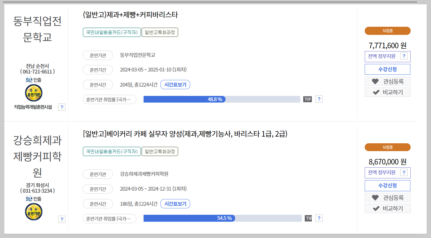 1) 바리스타 제과제빵 과정