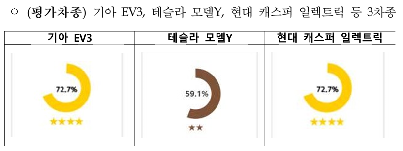 현대 캐스퍼 일렉트릭과 테슬라 모델 Y도 각각 3등급과 4등급을 기록하며 기술적 우위를 확인했습니다.