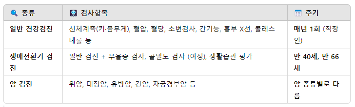 🩺 3️⃣ 건강검진 필수 항목 (직장인이 꼭 알아야 할 항목!)